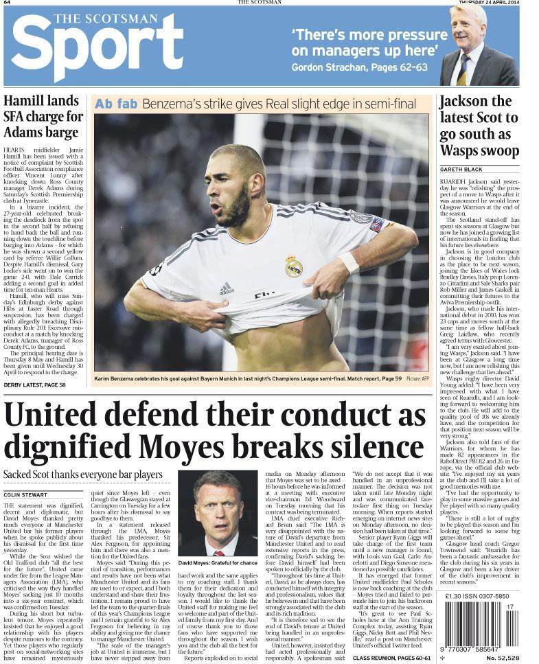 Scotsman - "United defend their conduct as dignified Moyes breaks silence"