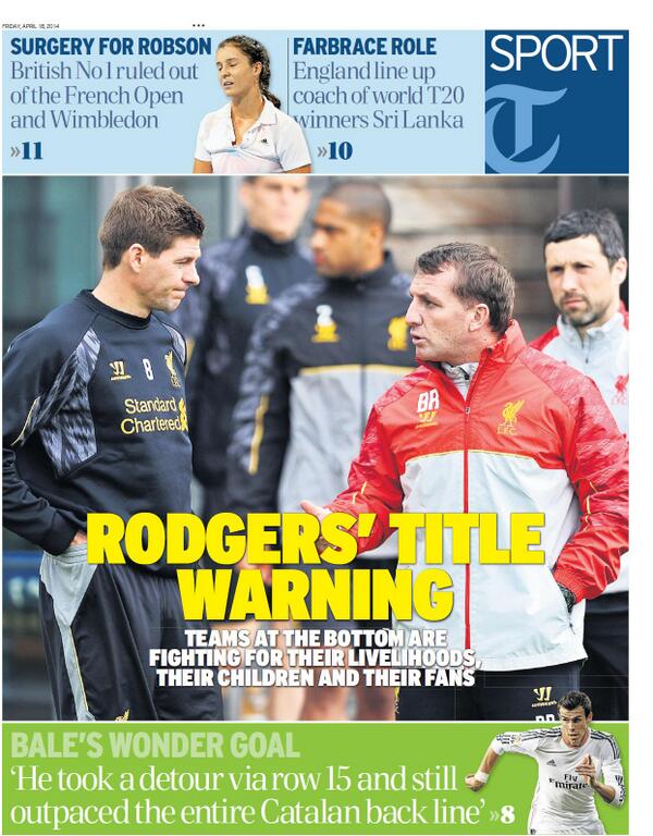 Telegraph Sport - "Rodgers' title warning"
