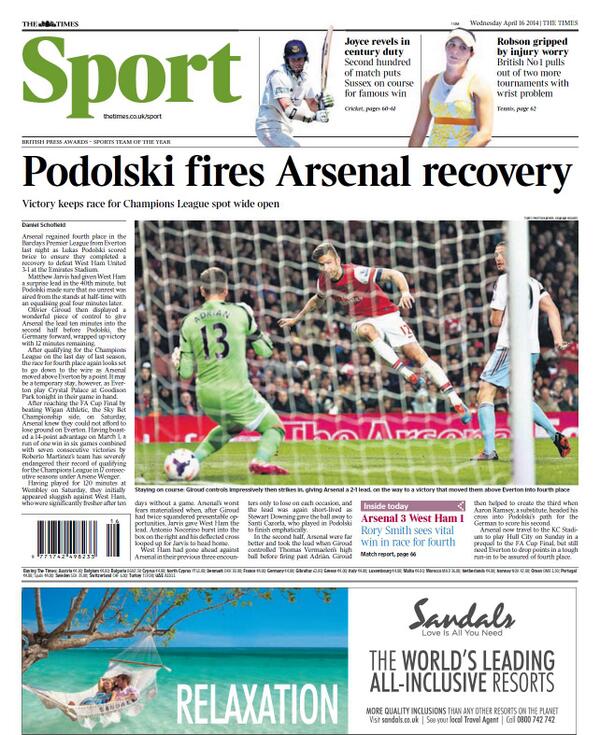 Times - "Podolski fires Arsenal recovery"