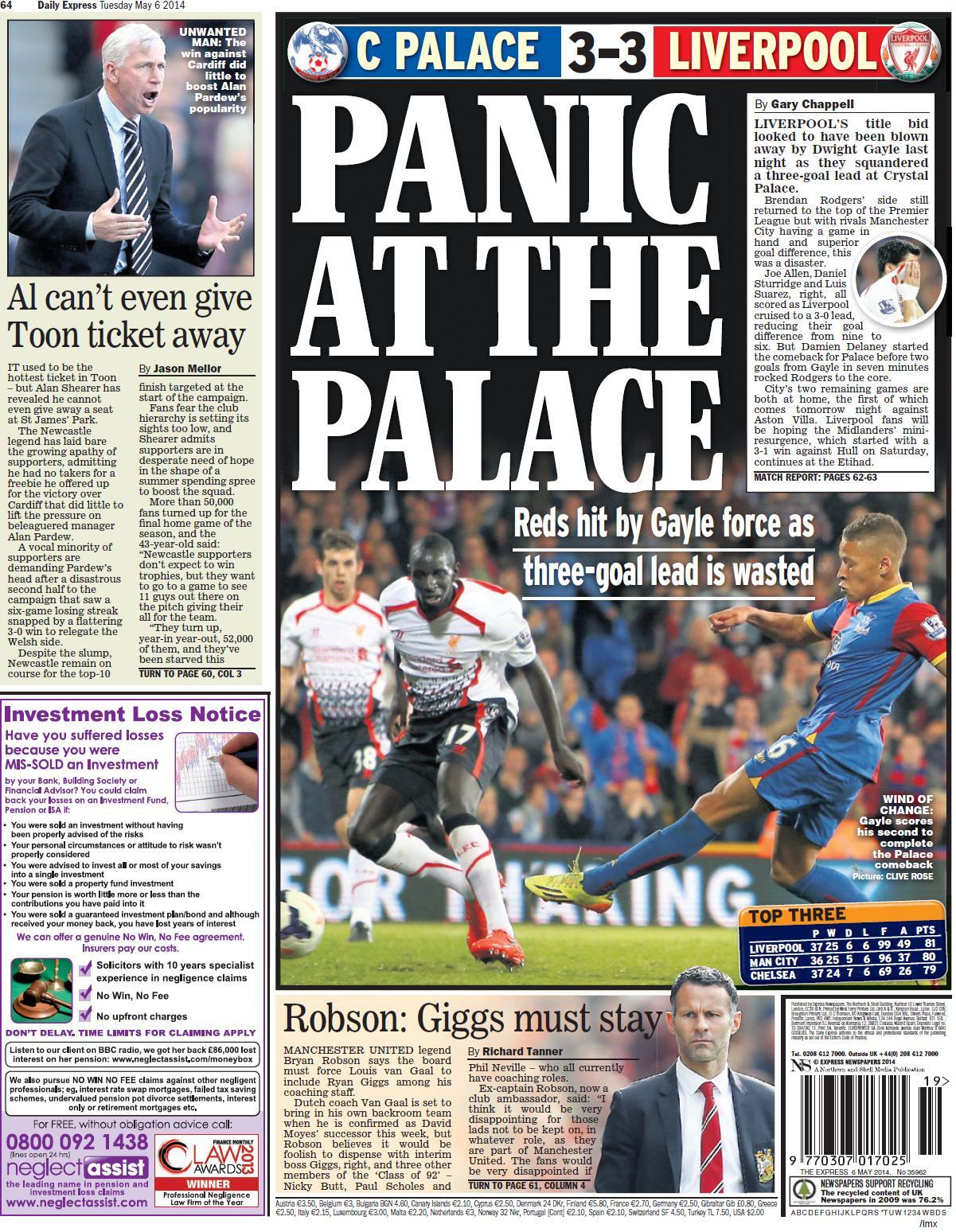 Daily Express - "Panic at the Palace"