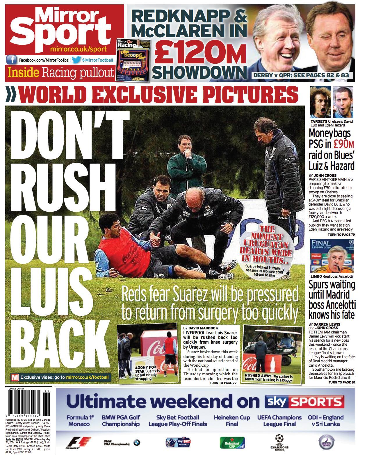 Daily Mirror - "Don't rush our Luis back"