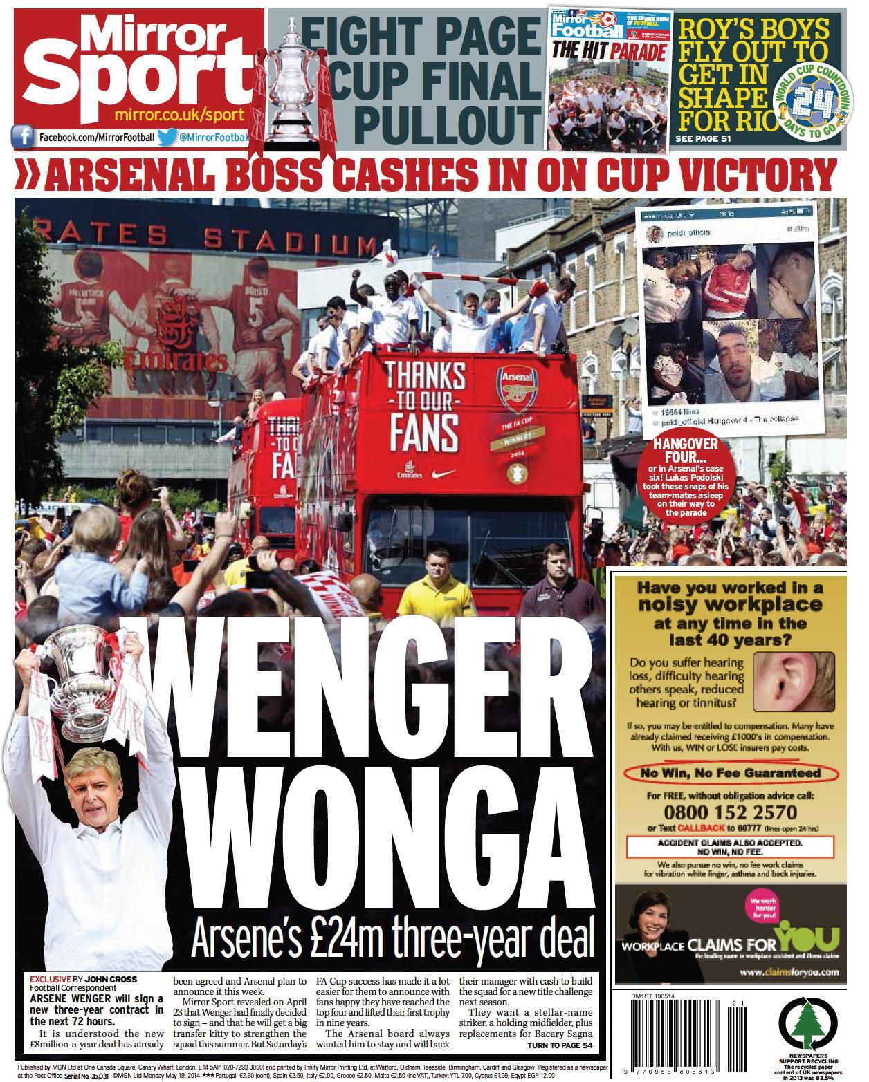 Daily Mirror - "Wenger Wonga"