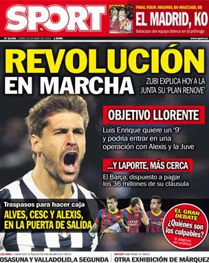 Sport: Revolução no Barça. Alves, Cesc e Alexis de saída. Llorente e Laporte os objetivos