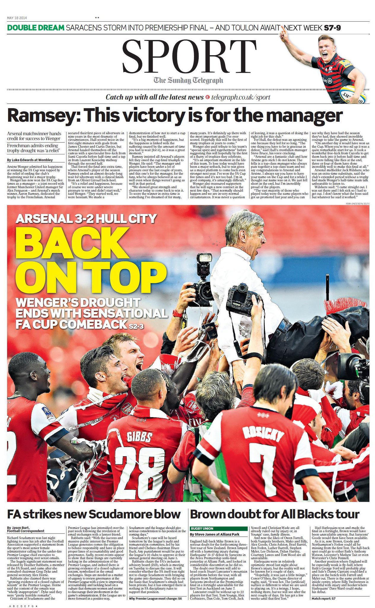 Sunday Telegraph Sport - "Back on Top"
