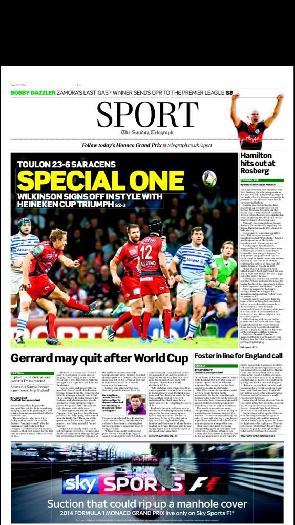 TELEGRAPH SPORT: Gerrard may quit after World Cup/Special One