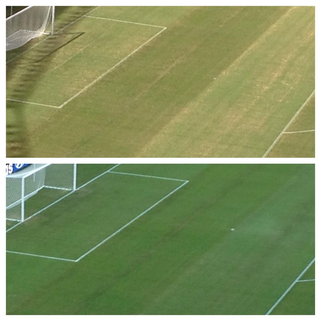 Imagem: Pintura deu resultado! Veja as diferenças do relvado de Manaus de ontem para hoje