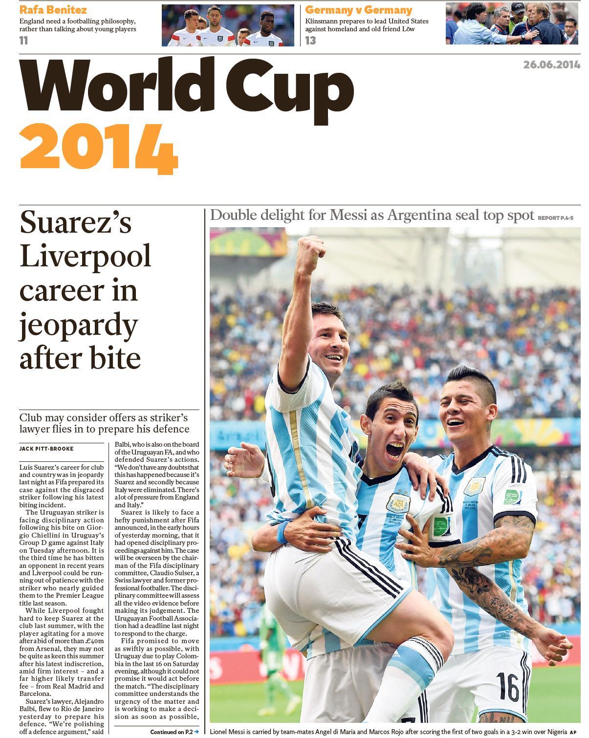 Independent World Cup 2014 - "Suarez's Liverpool career in jeopardy after bite"