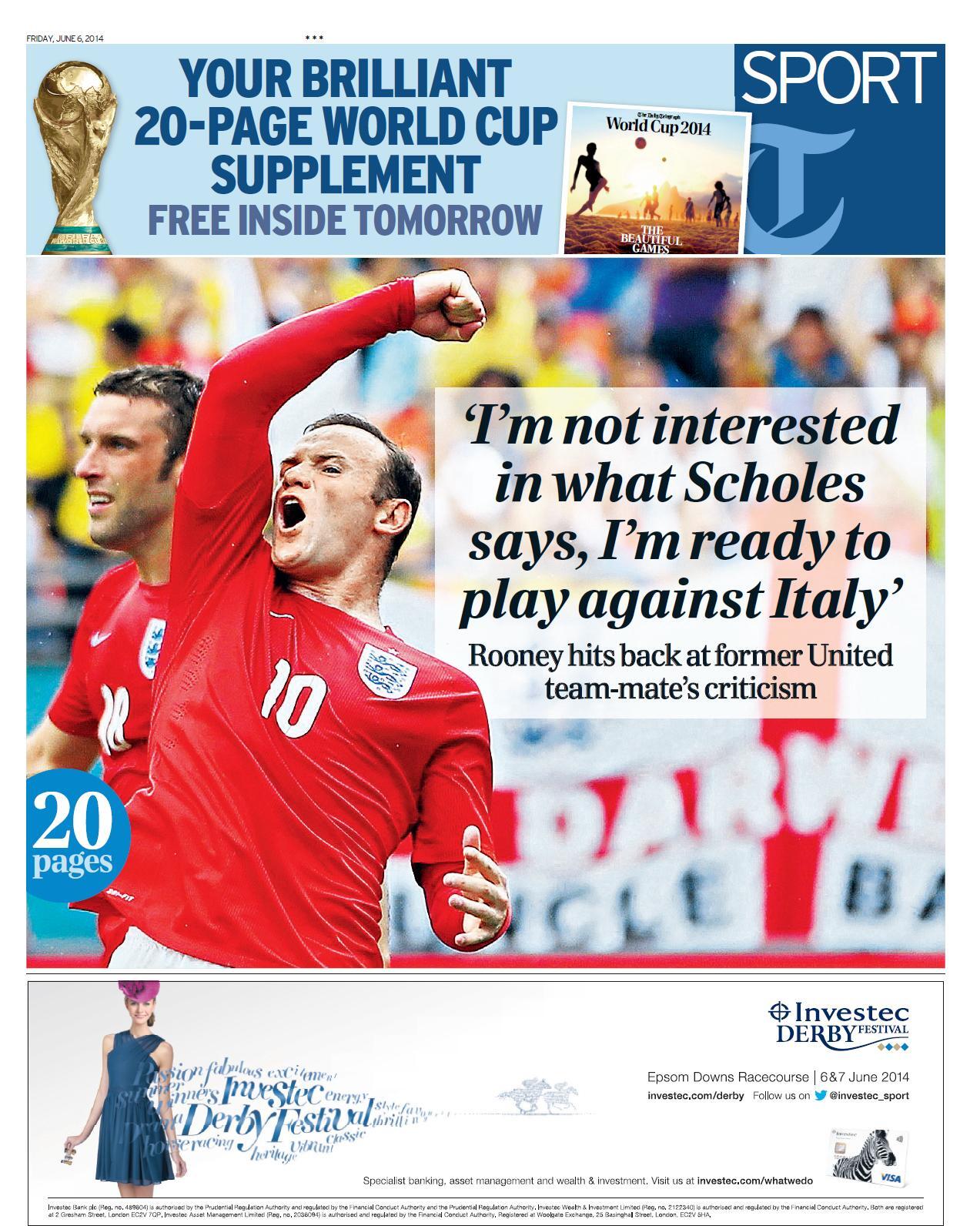 Telegraph Sport - "I'm not interested in what Scholes says, I'm ready to play against Italy"