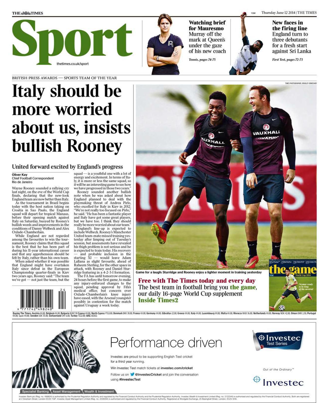 Times - "Italy should be more worried about us, insists bullish Rooney"