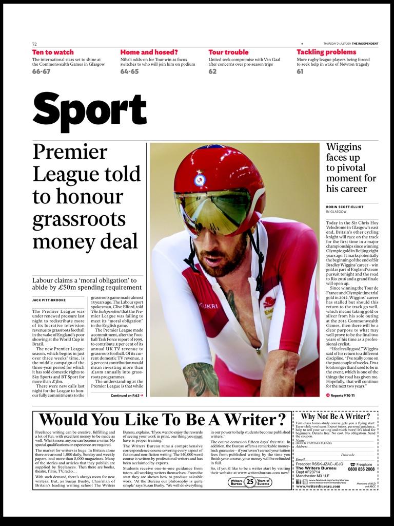 INDEPENDENT SPORT: Premier league told to honour grass roots money deal