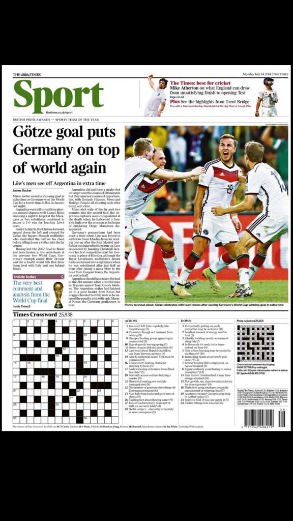 TIMES SPORT: Götse goal puts Germany on top of the world again