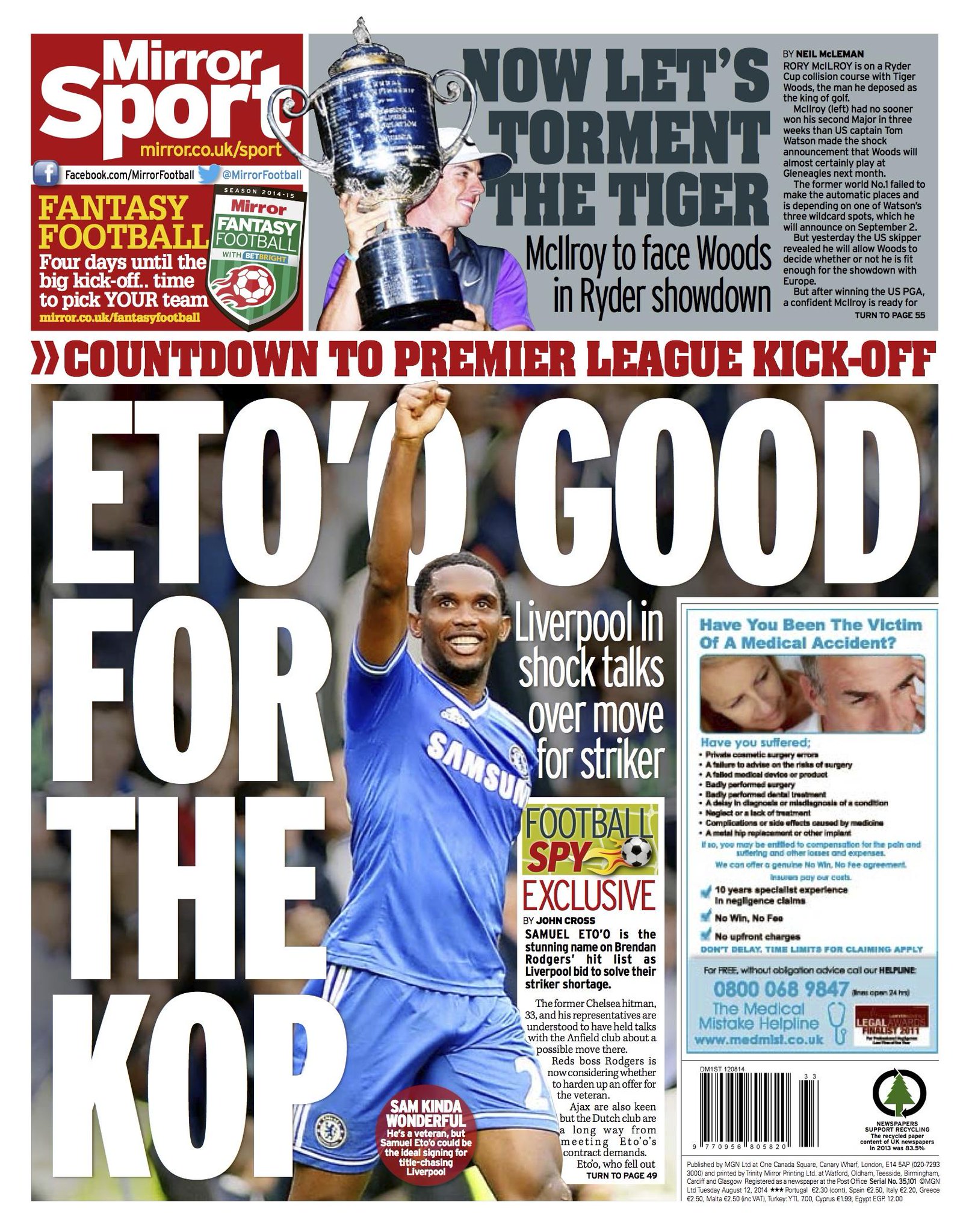 Daily Mirror - "Eto'o good for the Kop"
