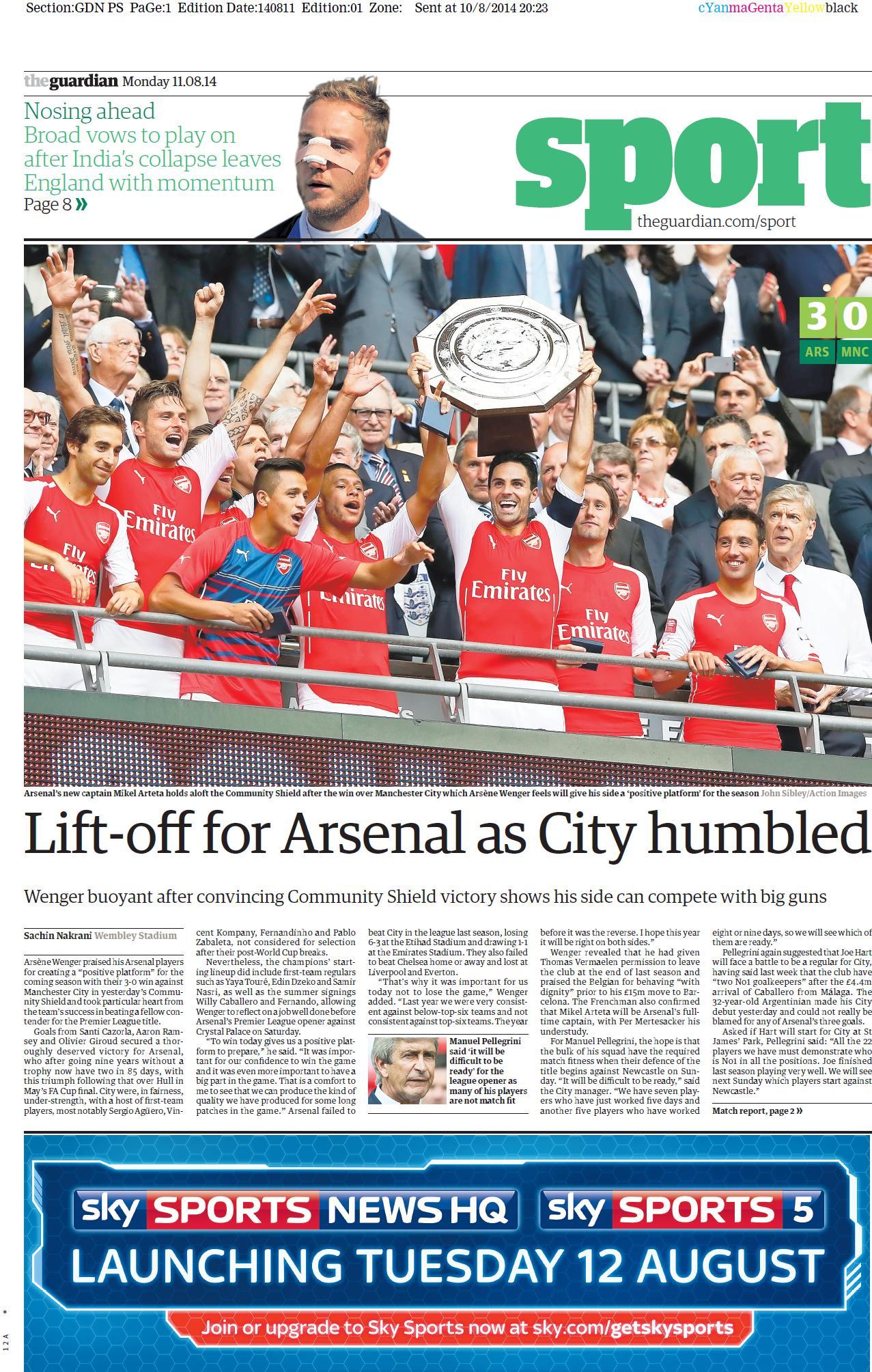 Guardian Sport - "Lift-off for Arsenal as City humbled"