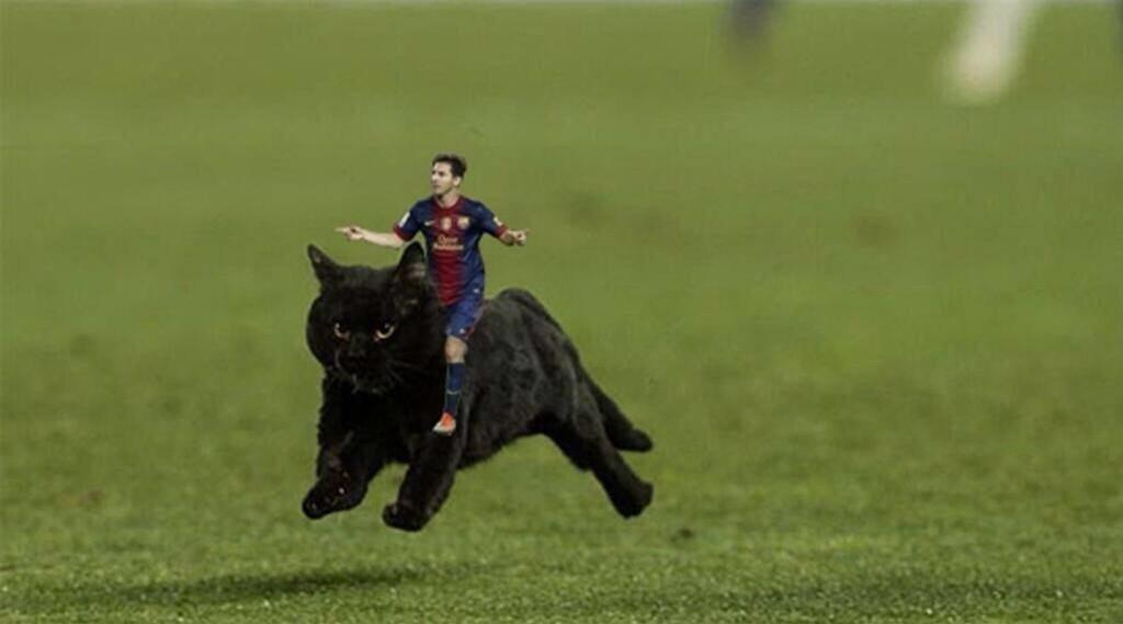 Imagem: Gato preto invade Camp Nou e já há humor nas redes sociais