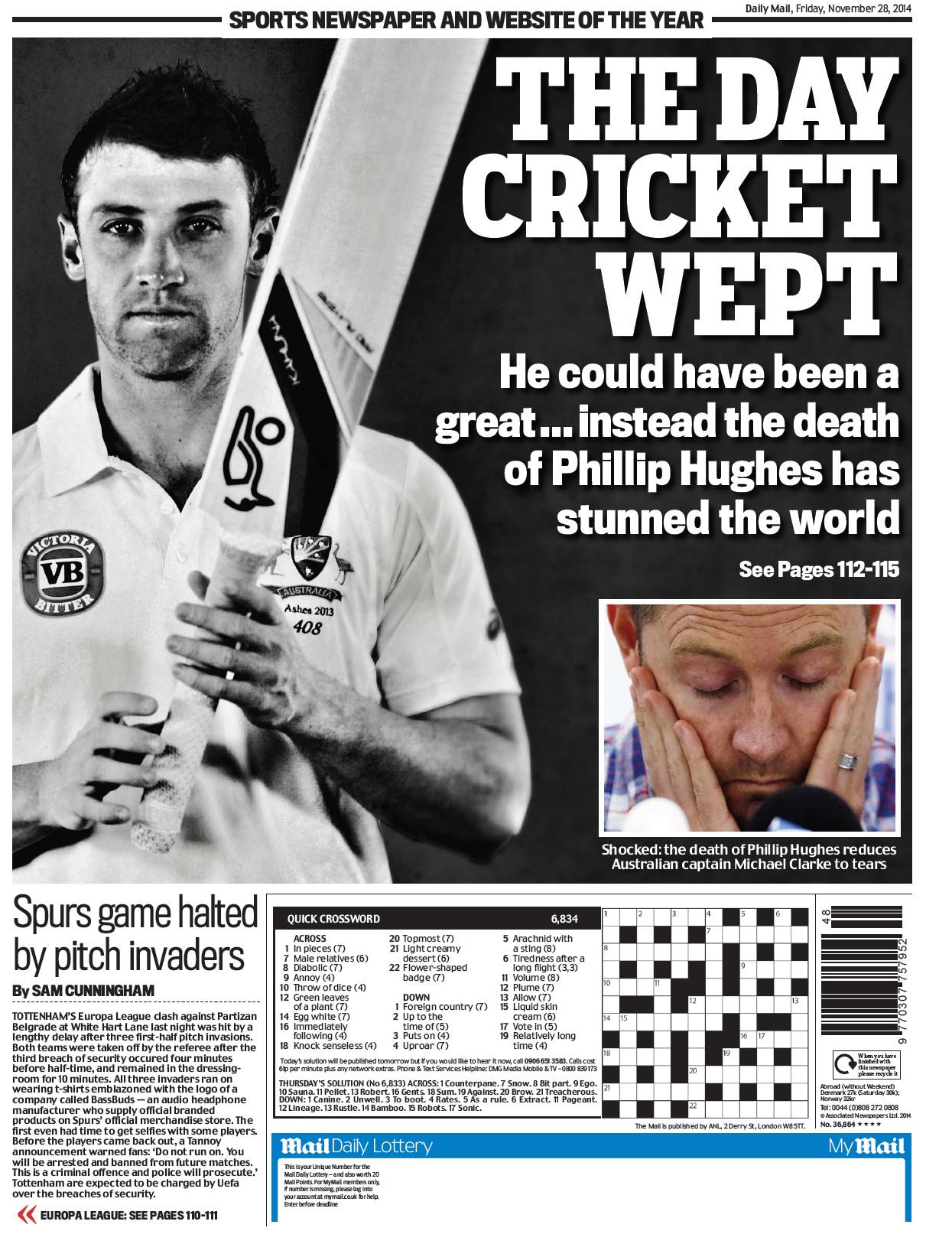 Daily Mail: The day cricket wept