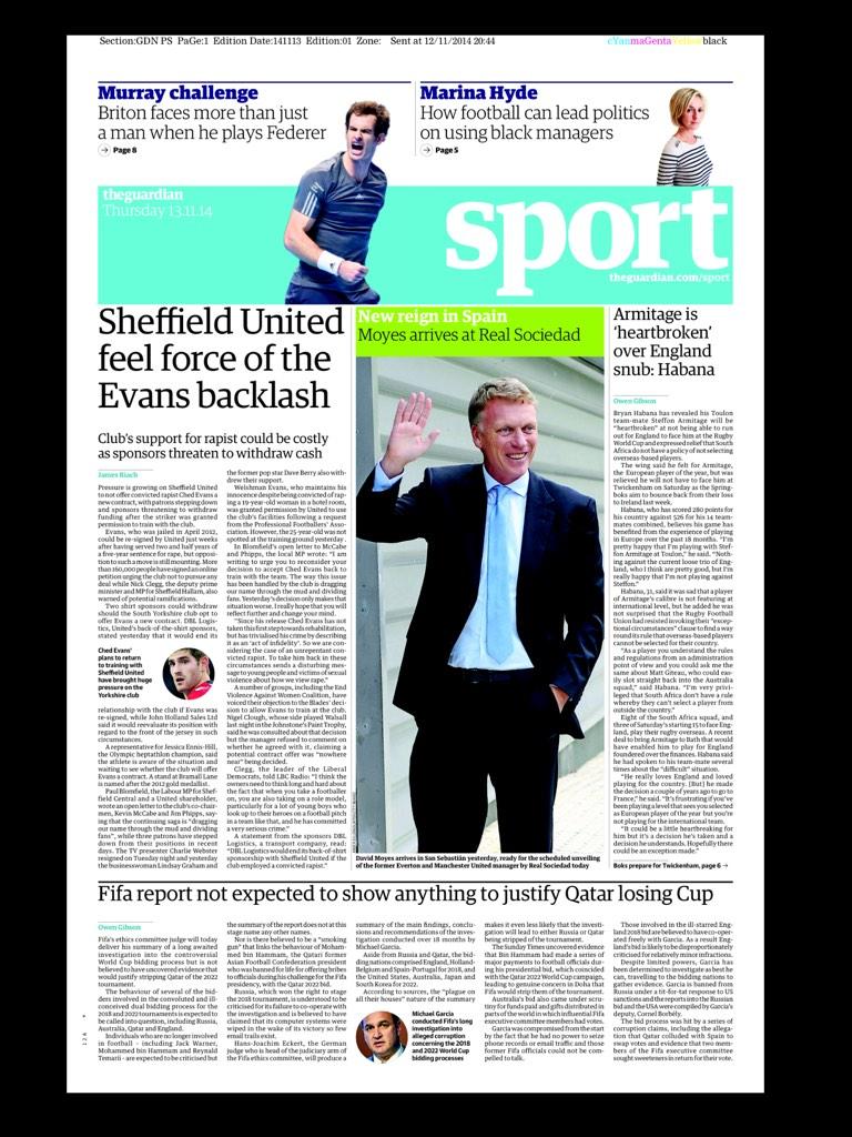 GUARDIAN SPORT: Sheffield feels force of Evans backlash