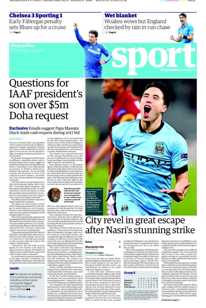 GUARDIAN SPORT: Questions for IAAF president's son over $5m Doha request