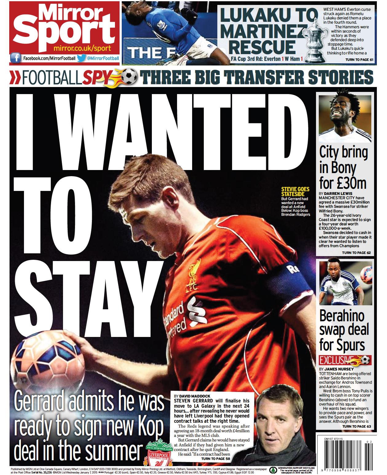 Daily Mirror: I wanted to stay