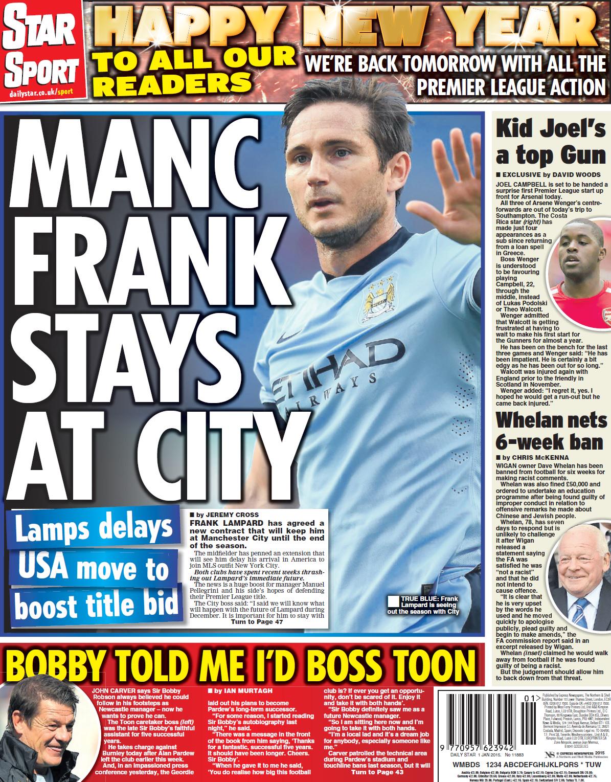 Daily Star: Manc Frank stays at City