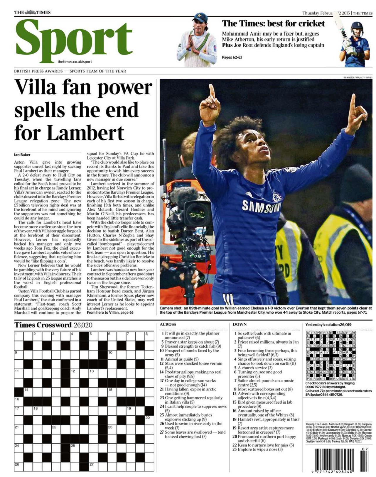 Times: Villa fan power spells the end for Lambert