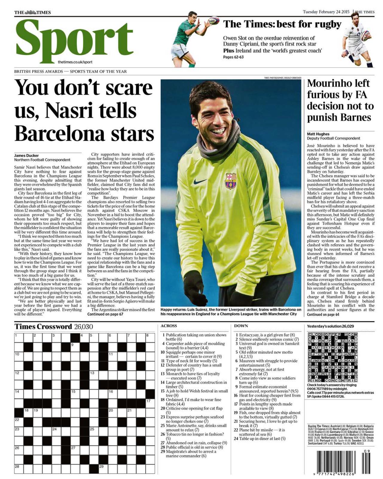 Times: You don't scare us, Nasri tells Barcelona stars