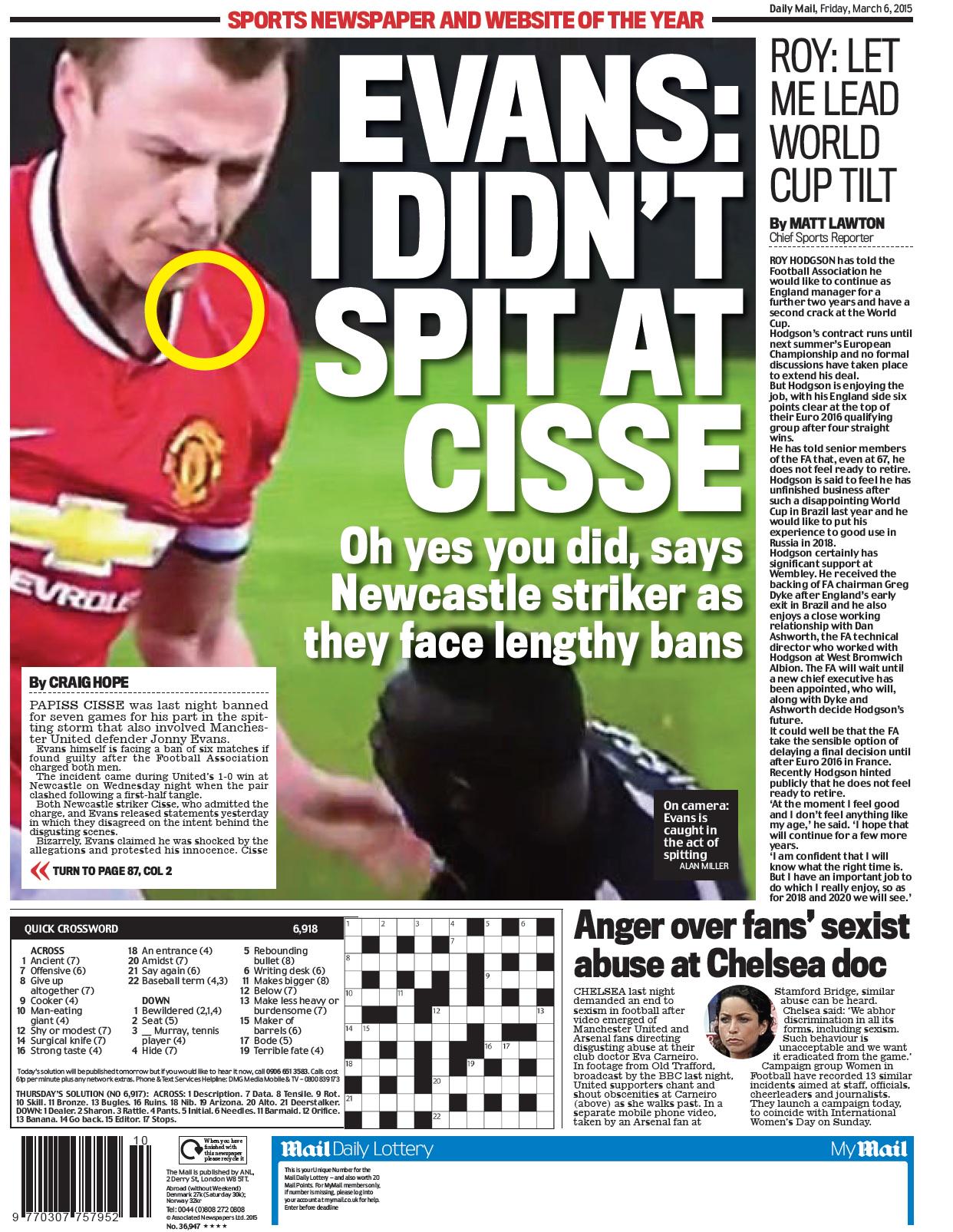 Daily Mail - Evans: I didn't spit at Cisse