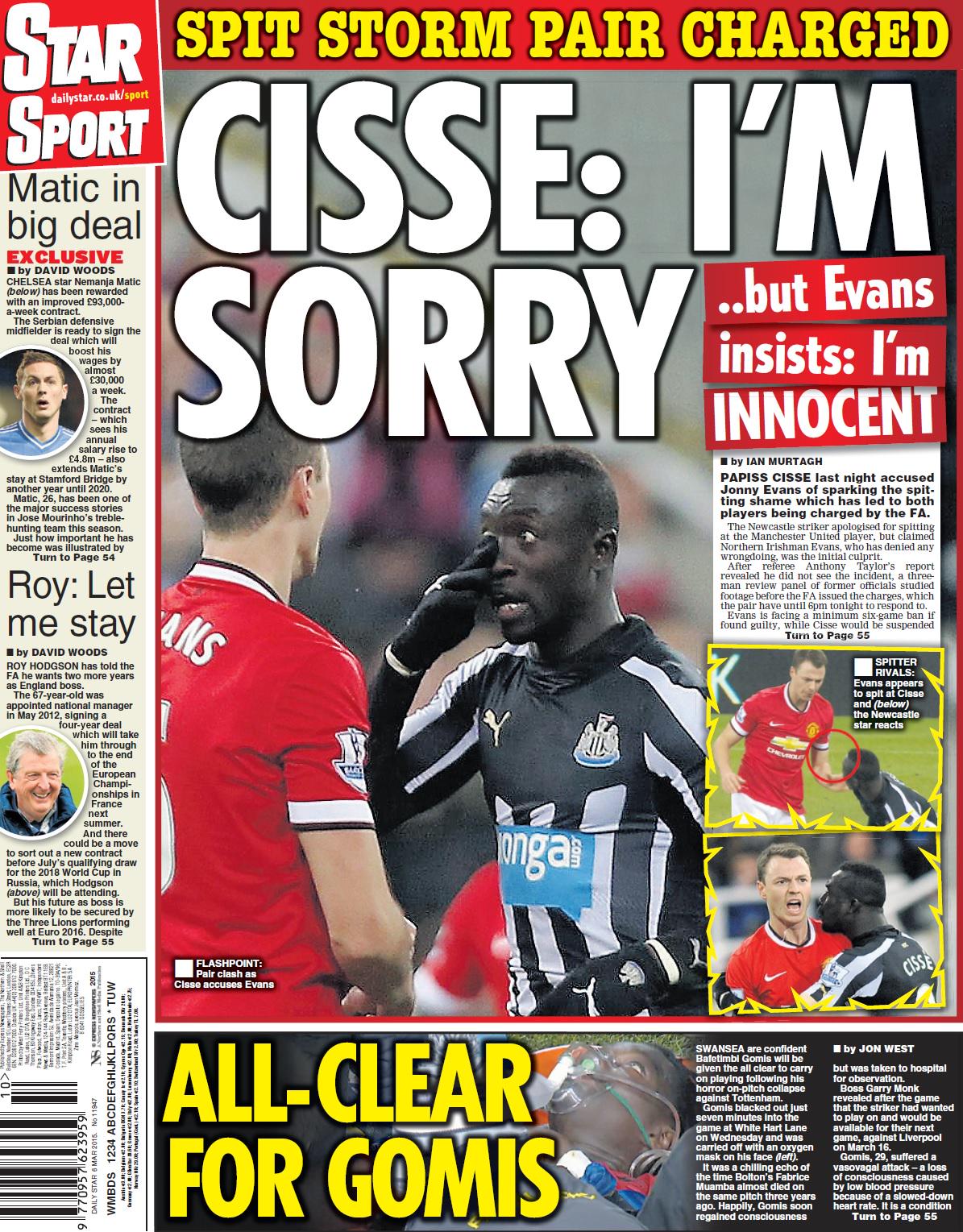 Daily Star - Cisse: I'm sorry...but Evans insists: I'm Innocent