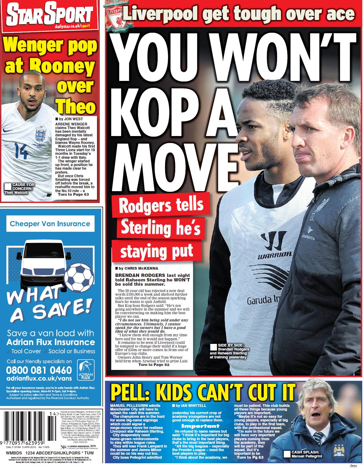 Daily Star: You won't Kop a move