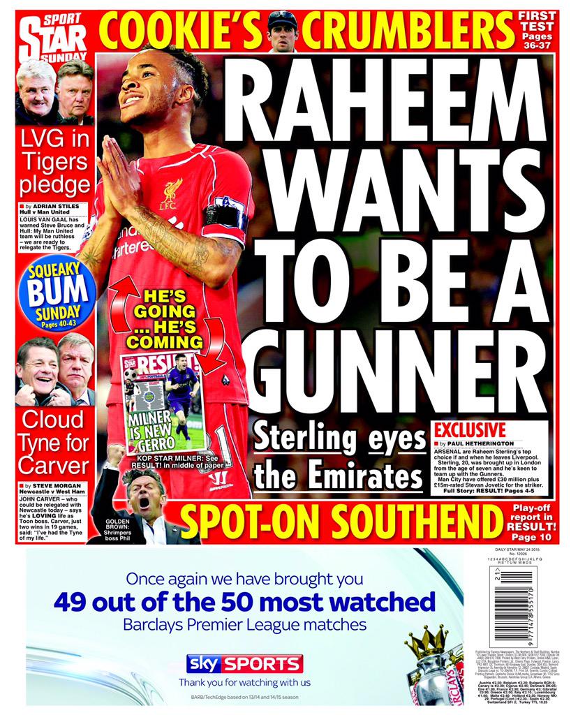 Daily Star: Raheem wants to be a Gunner