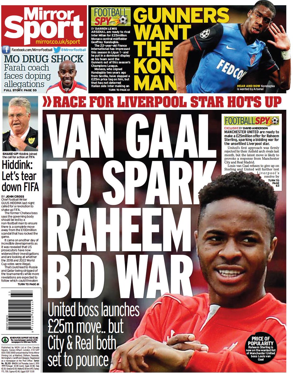 Daily Mirror: Van Gaal to spark Raheem bid war