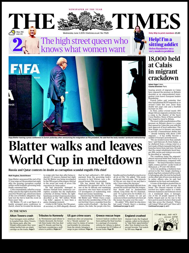 THE TIMES: Blatter walks and leaves World Cup in meltdown