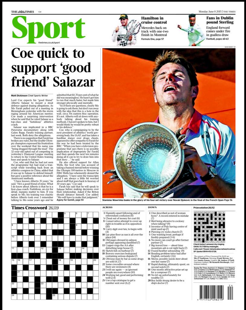 TIMES SPORT: Coe quick to support 'good friend' Salazar