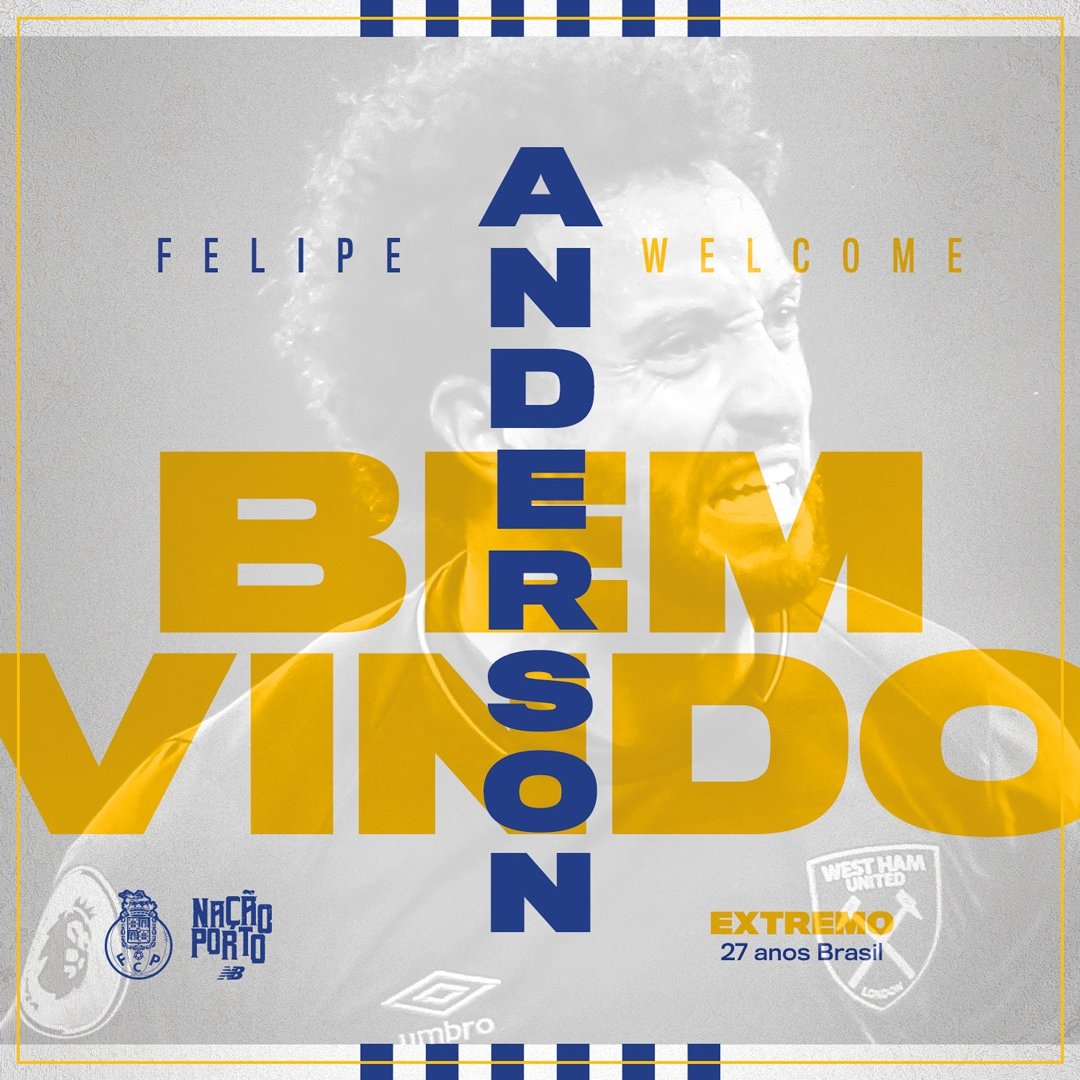 Felipe Anderson é o mais recente reforço do FC Porto para 2020/21. O internacional brasileiro muda-se para a cidade Invicta por empréstimo do West Ham, válido por uma temporada.