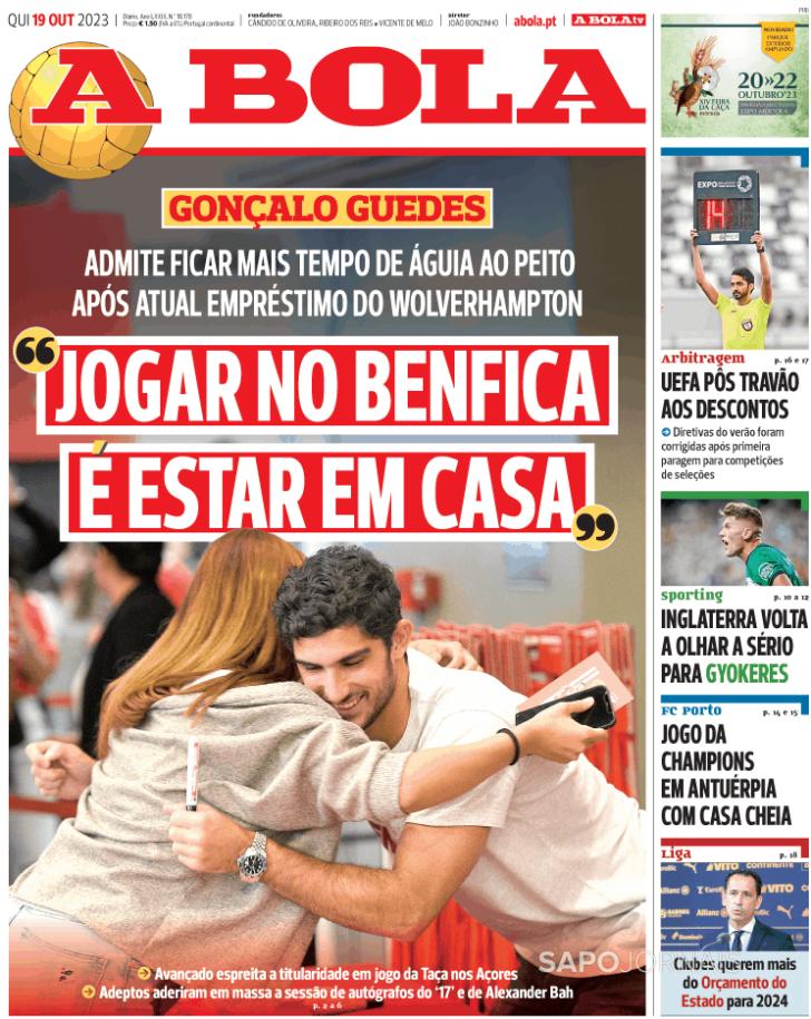 Capas: Os intocáveis em Alvalade e Luz. Gonçalo Guedes e a vontade de ficar no Benfica e ainda um ex-dragão em entrevista