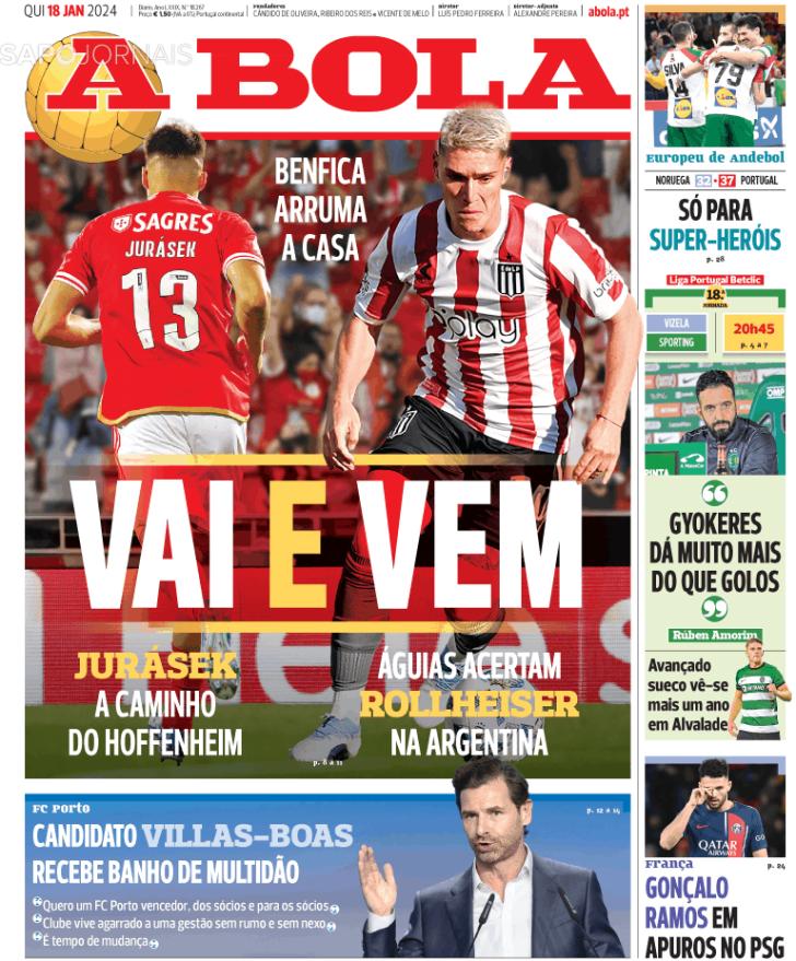 Capas: A apresentação do projeto de AVB, o mercado na Luz e as novidades em Alvalade com Amorim em destaque