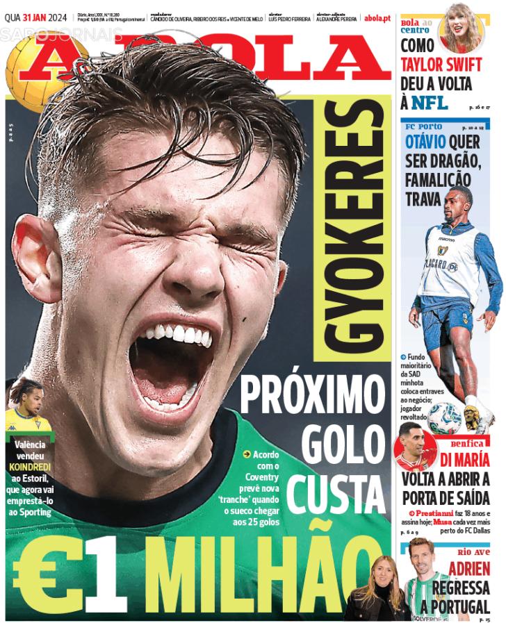 Capas: Gyokeres em grande destaque, Di Maria assume saída, o negócio em risco do FC Porto e o fecho de mercado e as últimas movimentações