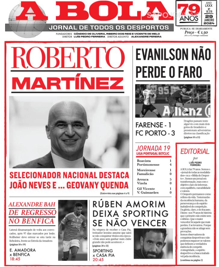 Capas: A vitória do FC Porto em Faro, Amorim e Schmidt e os jogos de Sporting e Benfica em destaque e ainda o mercado