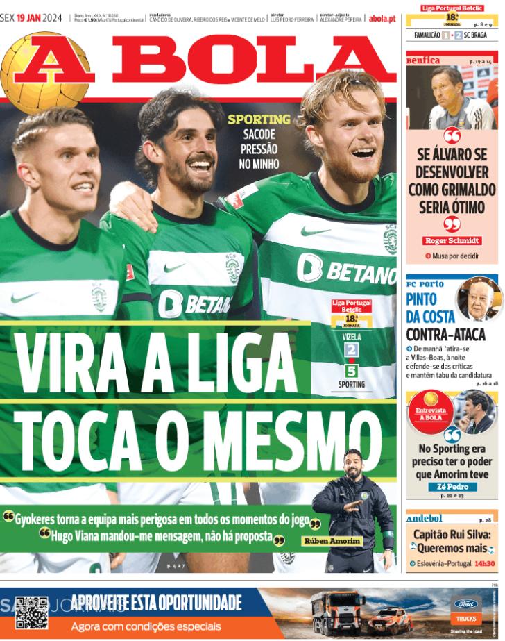 Capas: A vitória do Sporting que pressiona os rivais. Ainda o mercado na Luz, o jogo do Benfica e a defesa de Pinto da Costa