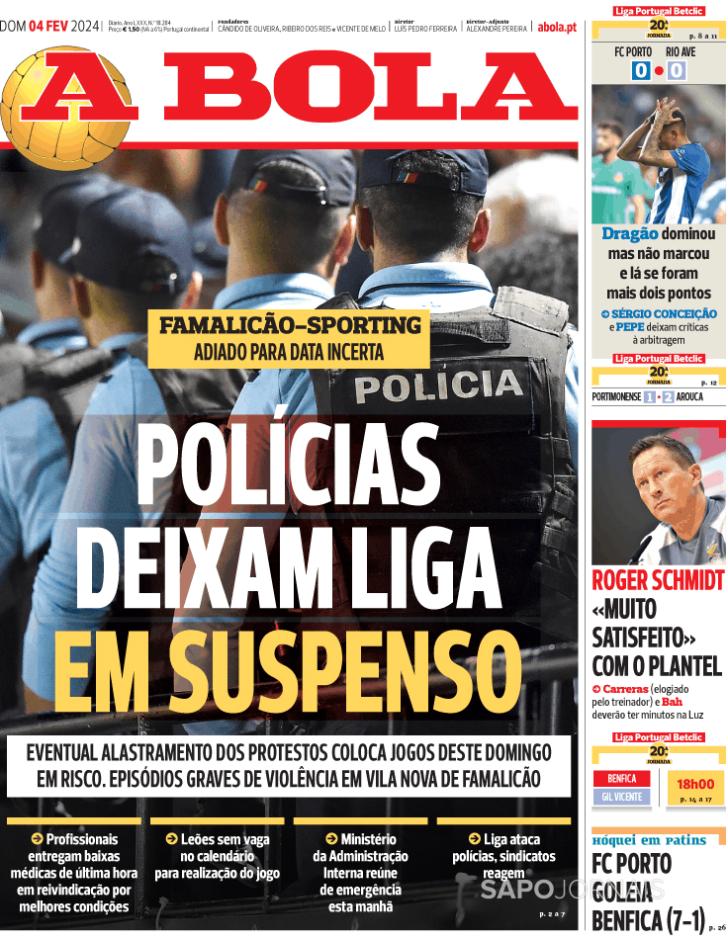 Capas: Polícias adiam jogo do Sporting, FC Porto bate no muro e Benfica entra hoje em campo
